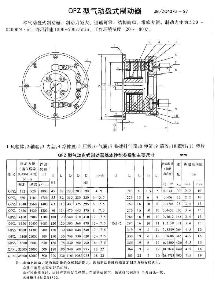 QPZ型氣動(dòng)盤式制動(dòng)器